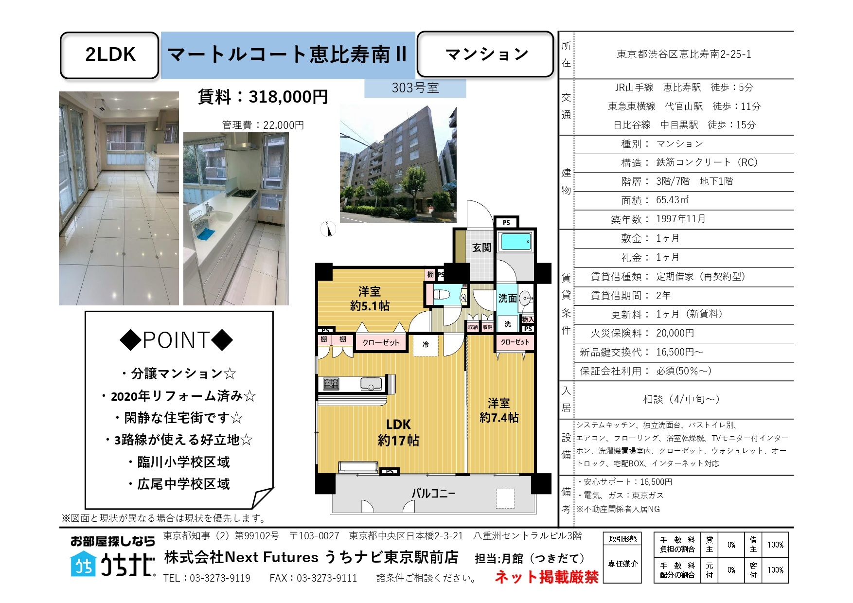 マートルコート恵比寿南Ⅱ 3階 募集開始いたしました!