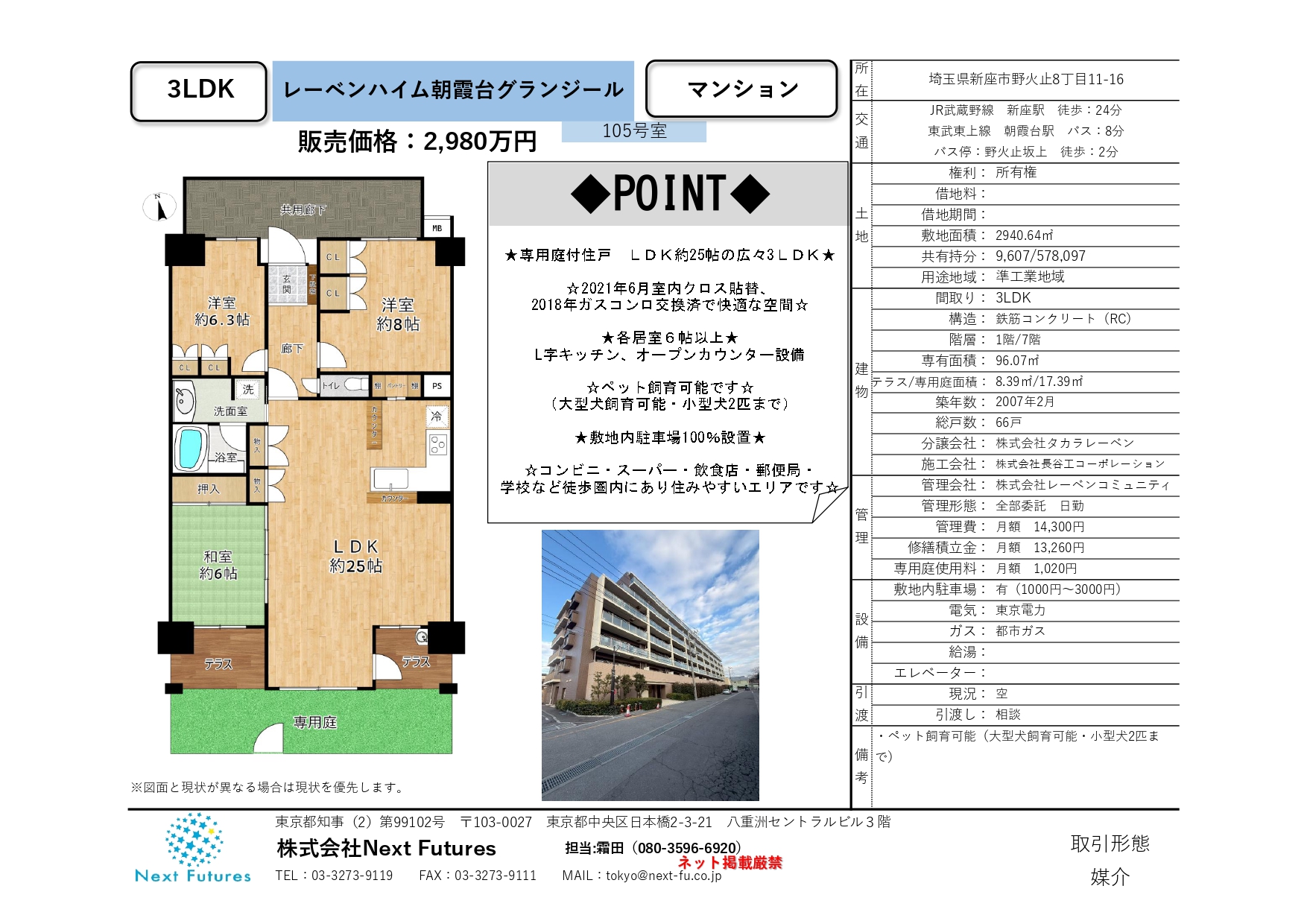 弊社媒介物件【レーベンハイム朝霞台グランジール1階専用庭付き】販売開始しました!